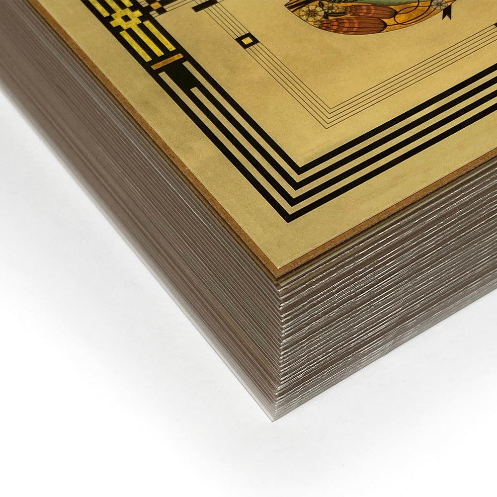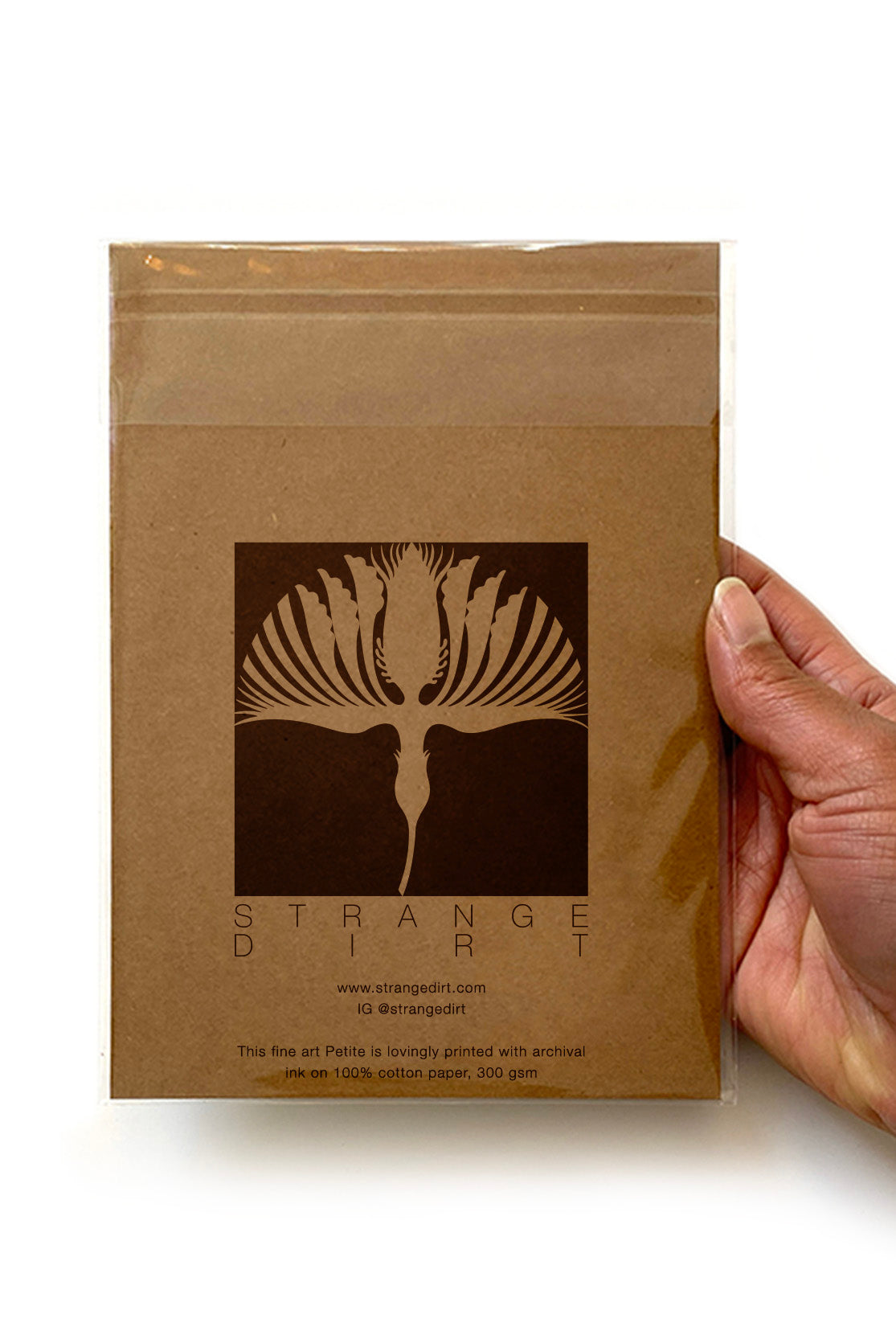 The Petite Prints come in a handful of sizes: 5”x7”, 6”x9“, 8”x8” and 8”x10”. Each is beautifully printed on heavy textured 300gsm cotton art paper with rich archival inks. For moisture, dust and scratch protection, these prints come enveloped in a crystal clear acid-free plastic sleeve backed with a chipboard for rigidity.